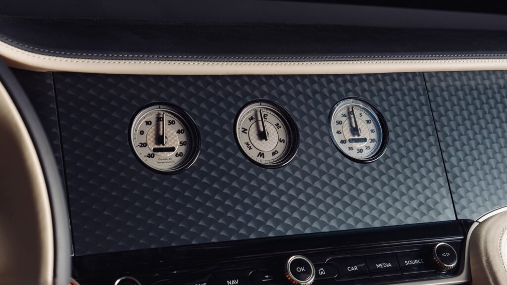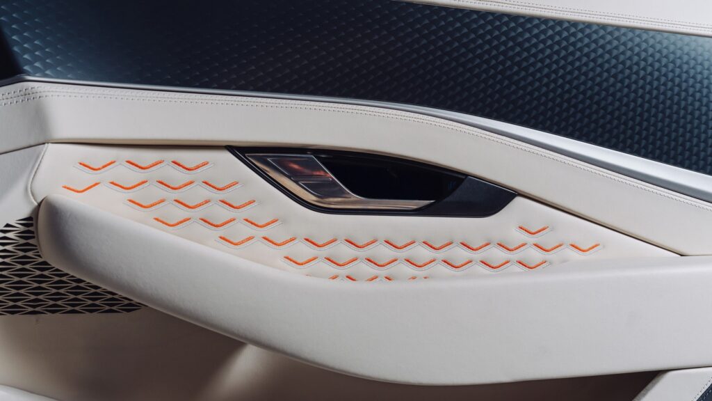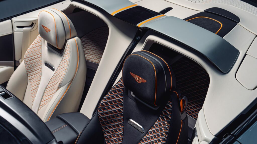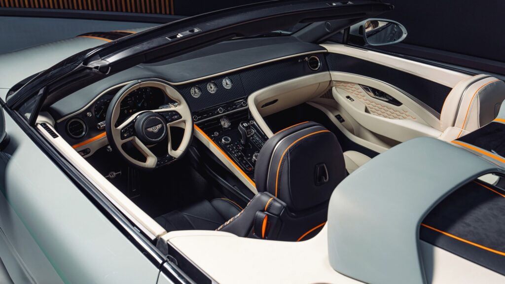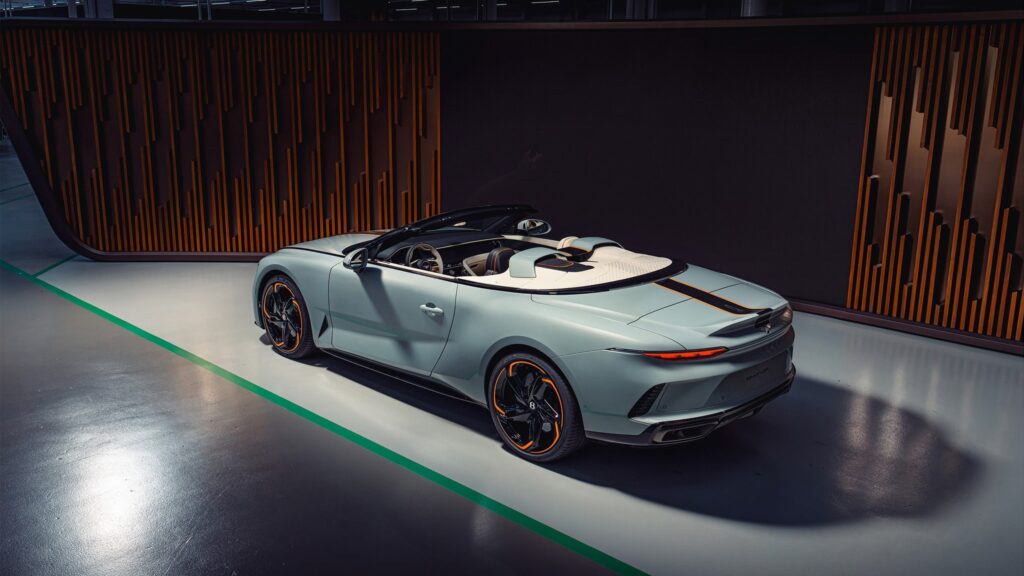La carrocería, pintada en Opalite, contrasta con detalles en Beluga y toques Mandarin, mientras que el interior adopta un enfoque «uno más uno». Esto significa que los acabados en cuero y Alcantara difieren entre el lado del conductor y el del pasajero, creando una experiencia asimétrica pero armoniosa. Además, el espacio de carga incluye un juego de maletas hecho a medida, elevando el estándar de personalización.