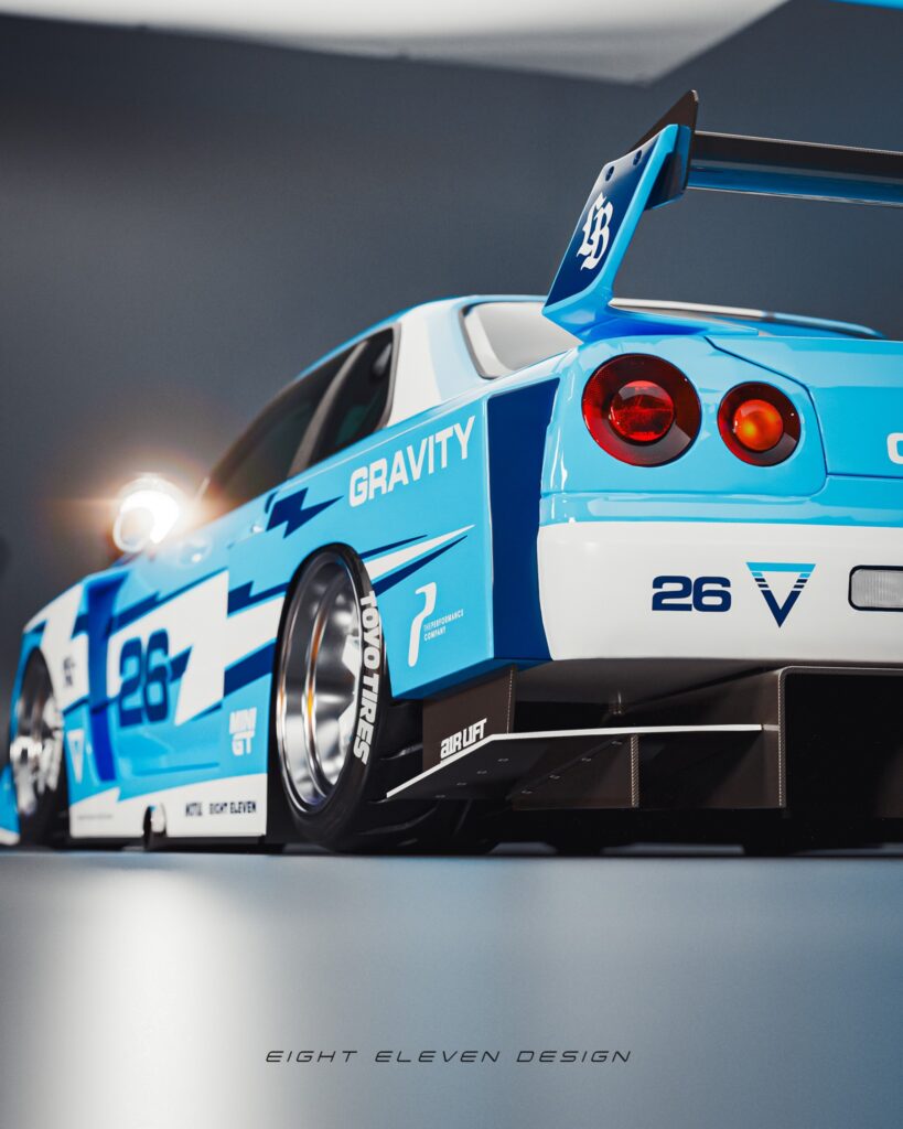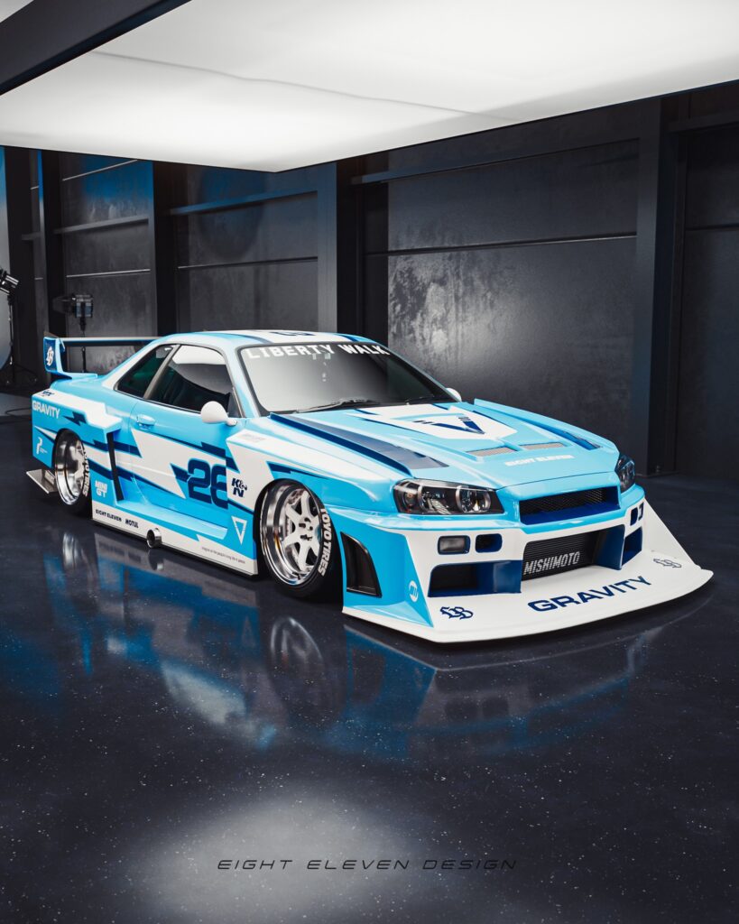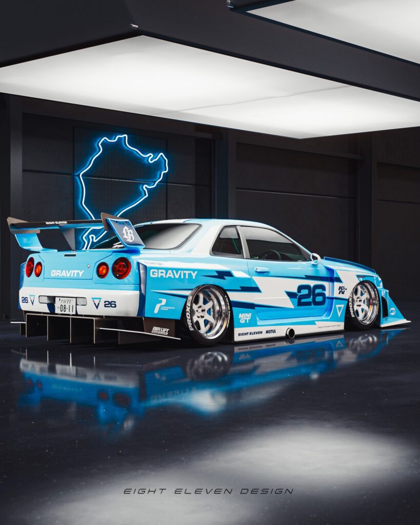 La esfera del diseño automotriz conceptual se ha visto sacudida por el lanzamiento de un avance que fusiona el legado japonés con una visión de competición futurista. El estudio EightEleven Design (811design) ha desvelado públicamente su propuesta para el «Gravity Show LB-ER34 Super Silhouette», un ejercicio de estilo que redefine los límites de la icónica saga Nissan Skyline.