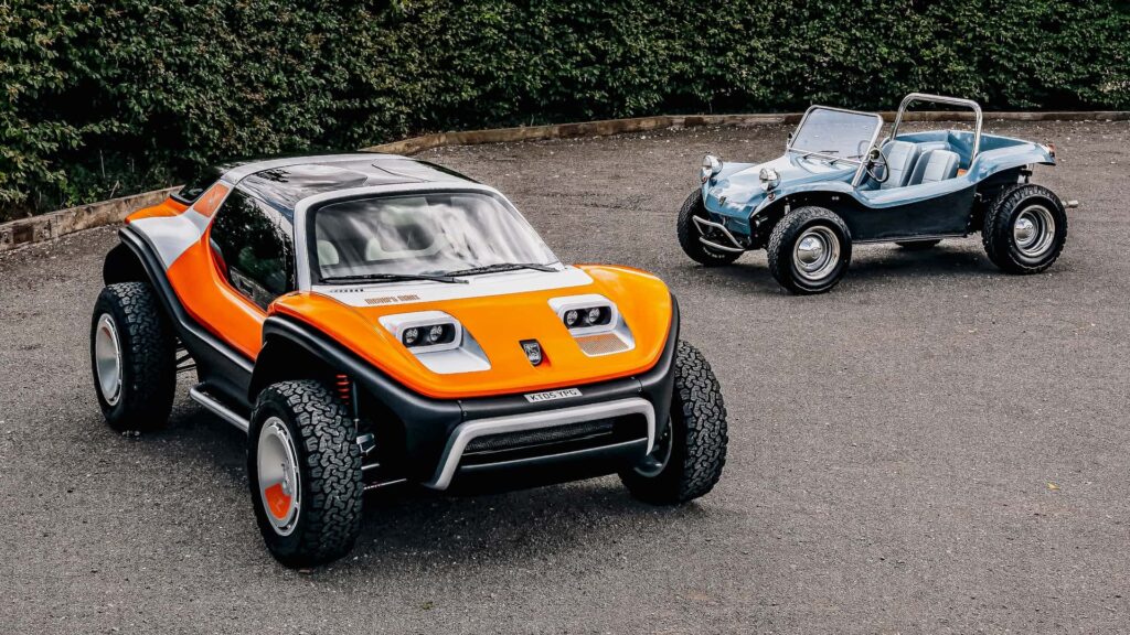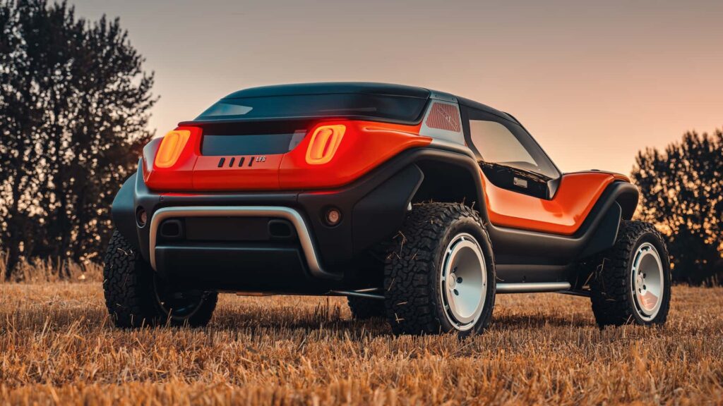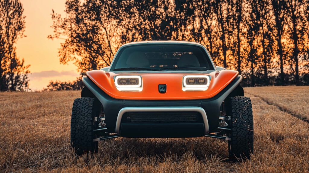 El diseño de la carrocería, obra de Freeman Thomas, respeta las líneas reconocibles del Manx clásico pero las ejecuta en fibra de carbono, reduciendo peso y aumentando la rigidez. Una de las innovaciones más destacadas es su cabina cerrada, que incorpora aire acondicionado y puede ser desmontada completamente en un proceso que, según los fabricantes, no supera los dos minutos, transformando el vehículo en un descapotable para experiencias de conducción al aire libre.