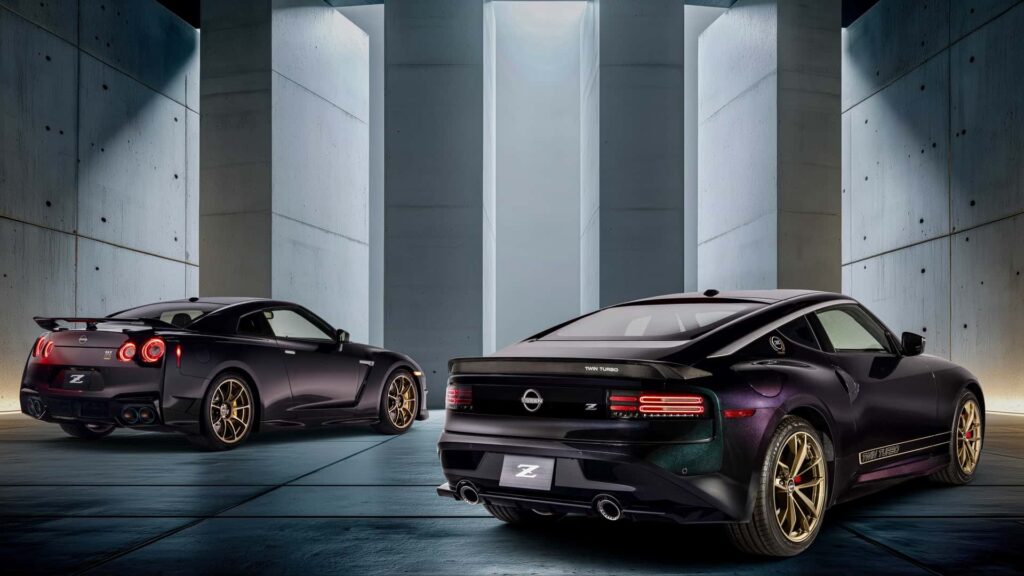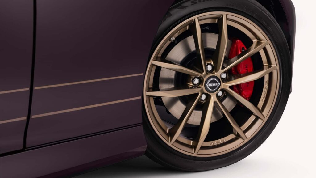 La edición, disponible exclusivamente en la versión Z Performance, se distingue por su pintura Midnight Purple, un tono profundamente asociado a las versiones más exclusivas del GT-R. Este color, que cambia de tonalidad según la incidencia de la luz, se complementa con un juego de llantas RAYS de 19 pulgadas en acabado bronce oscuro.