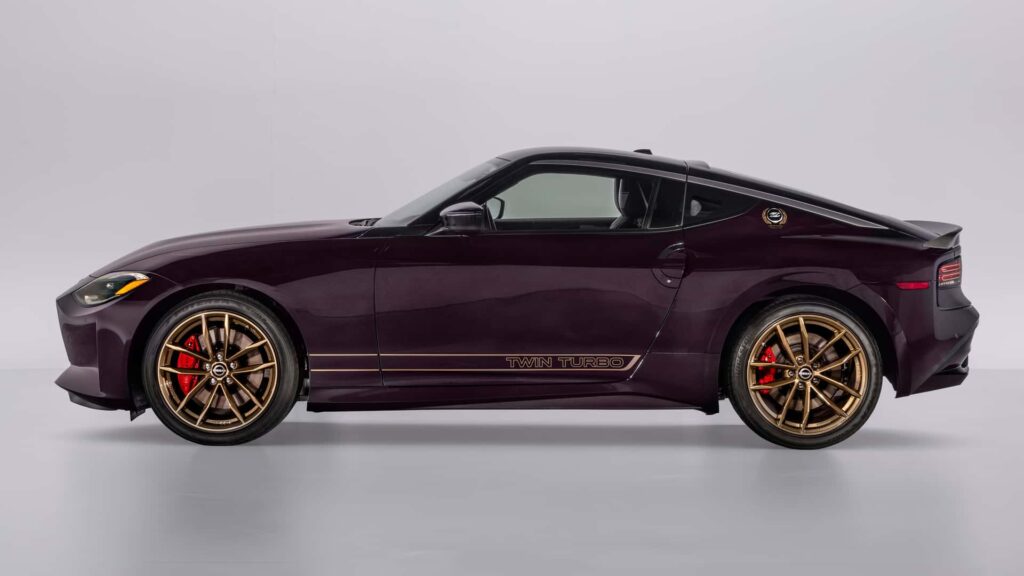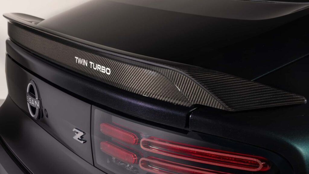 El paquete de homenaje incluye también un alerón trasero de fibra de carbono y un emblemático logotipo “Twin Turbo” en los guardabarros, un guiño directo al motor del 300ZX. En el interior, se incorporan bordados y badenes exclusivos que refuerzan la identidad de esta edición especial.