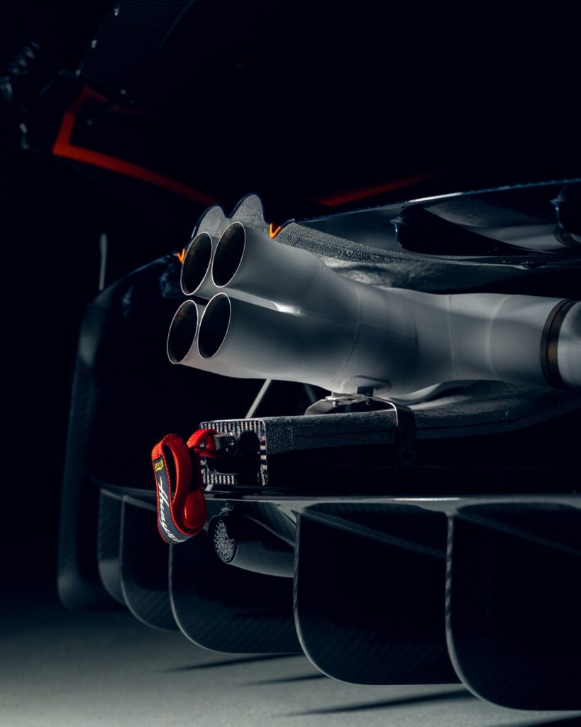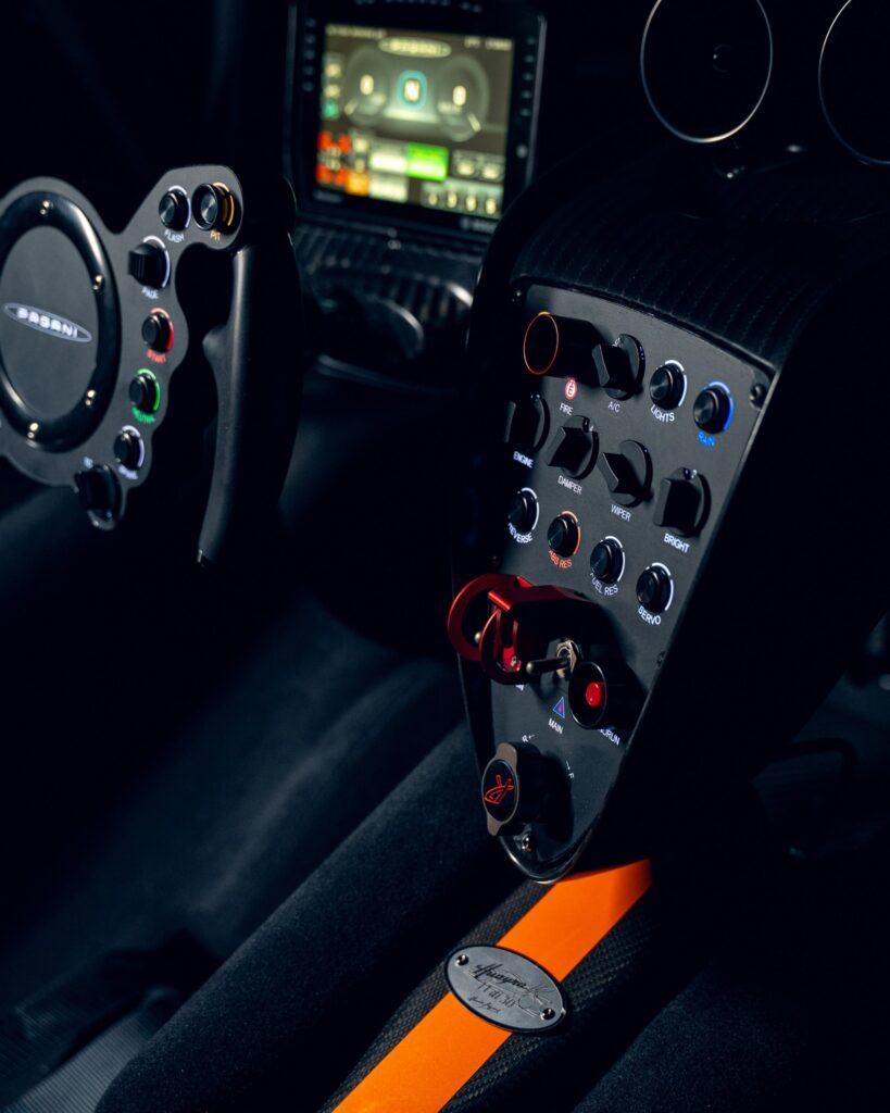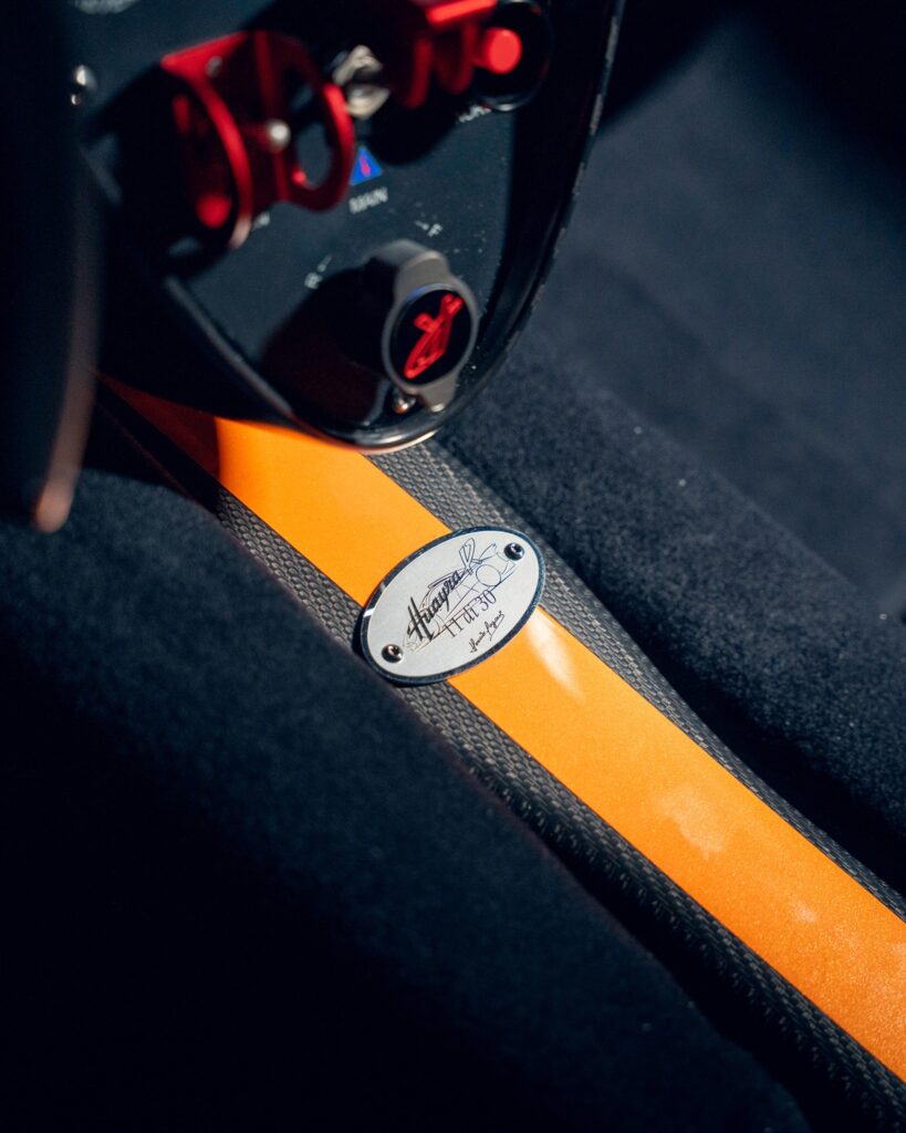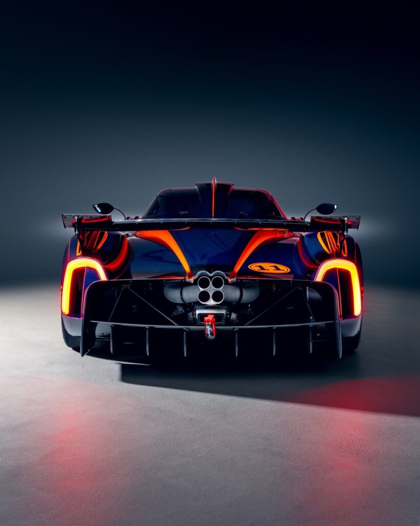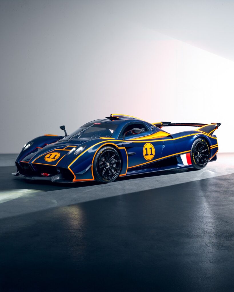 Un ejemplar específico, identificado como la unidad 11 de una serie limitada a 30, ha captado la atención por su acabado exterior. La carrocería combina los tonos Blue Danubio, Blue Avio y Arancio Marbella sobre la textura de la fibra de carbono. El interior confirma su orientación competitiva, integrando asientos con homologación FIA GT, una estructura de protección antivuelcos y un sistema de información específico para entornos de competición.