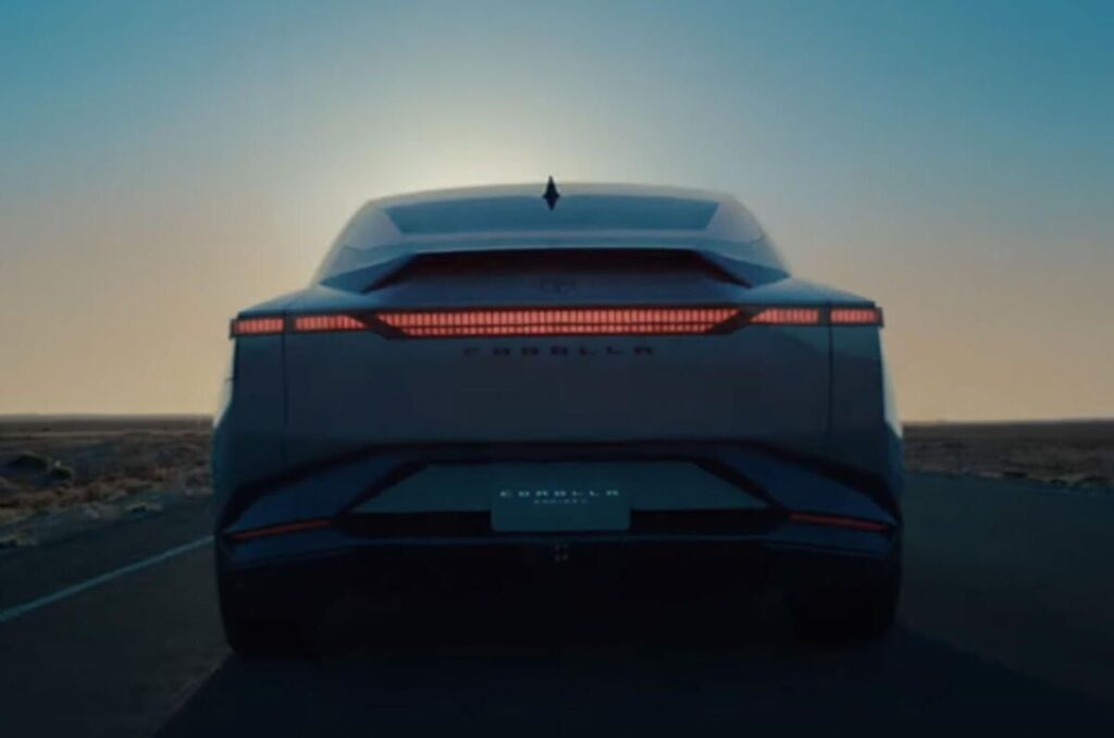 El concepto rompe de manera decisiva con los códigos de diseño tradicionales del Corolla. Su carrocería luce un estilo marcadamente futurista, delineada por formas aerodinámicas que priorizan la eficiencia. En la parte delantera, destaca la ausencia de la clásica parrilla, reemplazada por una toma de aire minimalista, mientras que una barra de luces LED de ancho completo dota al vehículo de una firma lumínica distintiva. El perfil, de silueta elegante y fluida, se acentúa con un alerón integrado estilo “cola de pato” en el portón trasero, culminando en una imagen que fusiona modernidad y refinamiento.