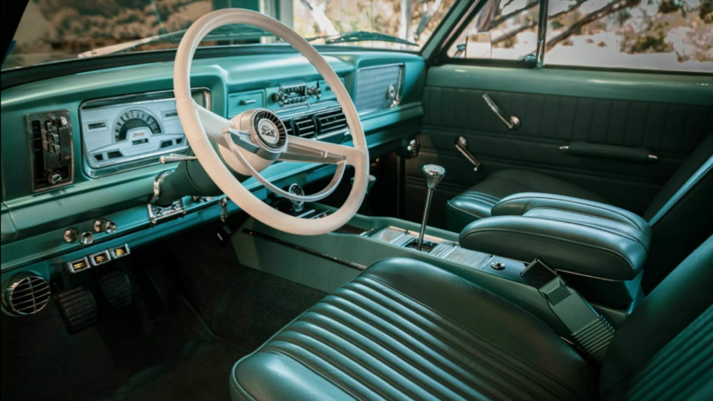El apartado estético conserva la silueta robusta y elegante que caracterizó al modelo original de los años sesenta. La carrocería ha sido vestida con un tono Azul Flamboyant, complementado con detalles cromados que acentúan su linaje clásico. Sin embargo, el verdadero cambio se aprecia en su arquitectura funcional. El sistema de tracción integral ha sido desarrollado a la medida para este proyecto, acompañado de una suspensión elevada y frenos de alto desempeño que garantizan un comportamiento sólido tanto en asfalto como en terrenos accidentados.