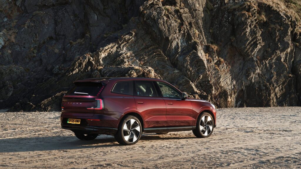 El diseño exterior mantiene la sobriedad característica de la marca, con una firma lumínica delantera que evoca los famosos faros «Martillo de Thor». En el interior, la cabina sigue una filosofía minimalista, disponible en configuraciones de seis o siete plazas. Se emplean materiales sostenibles y ofrece una capacidad de carga máxima de hasta 85 pies cúbicos. El confort está garantizado por una suspensión neumática que busca una experiencia de conducción premium.